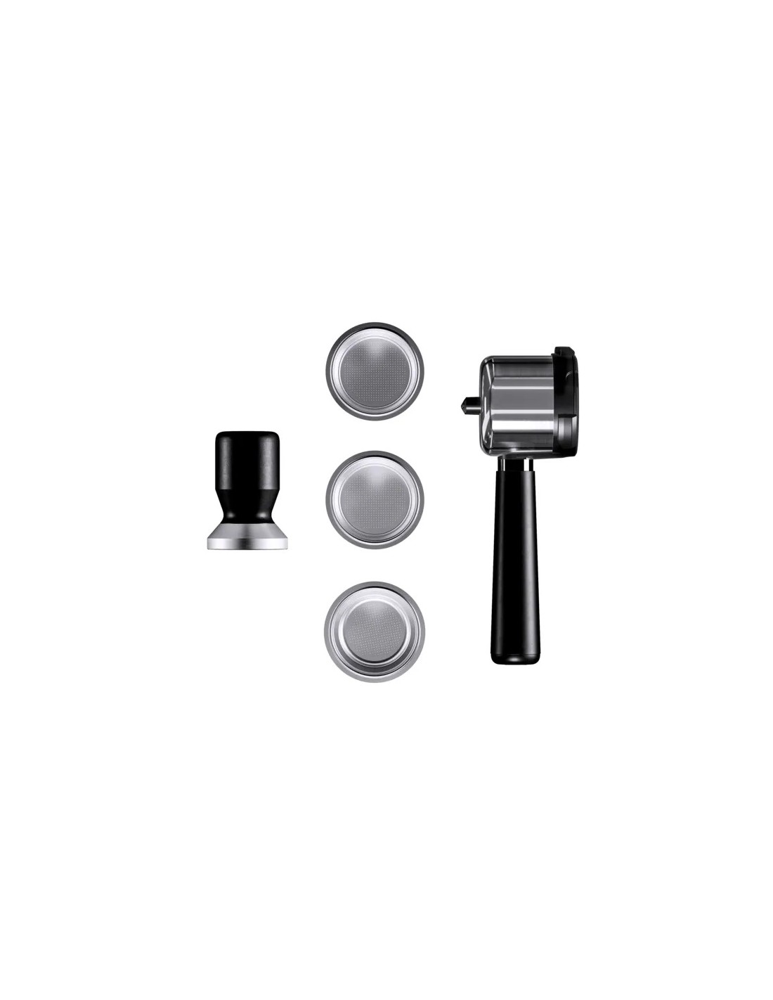 La máquina viene equipada los accesorios necesarios para preparar todos los tipos de café espresso: un portafiltros de alta calidad, un tamper de acero inoxidable perfectamente equilibrado, tres filtros de distintas capacidades y una bandeja de goteo de altura ajustable para usar tazas de diferentes tamaños.