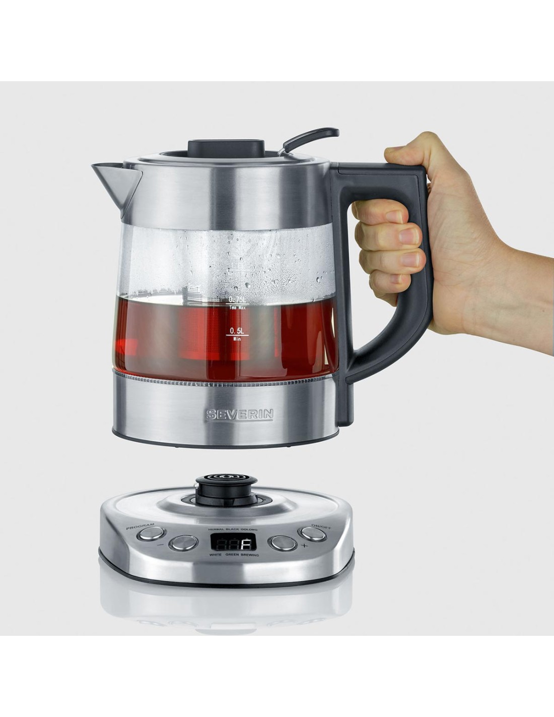 El sistema central inalámbrico 360° de los hervidores de Severin hacen accesible la jarra desde cualquier ángulo. Dispone de diferentes sistemas de seguridad como protección contra el sobrecalentamiento, corte de vapor y pies engomados antideslizantes para que el uso de este producto sea completamente seguro.