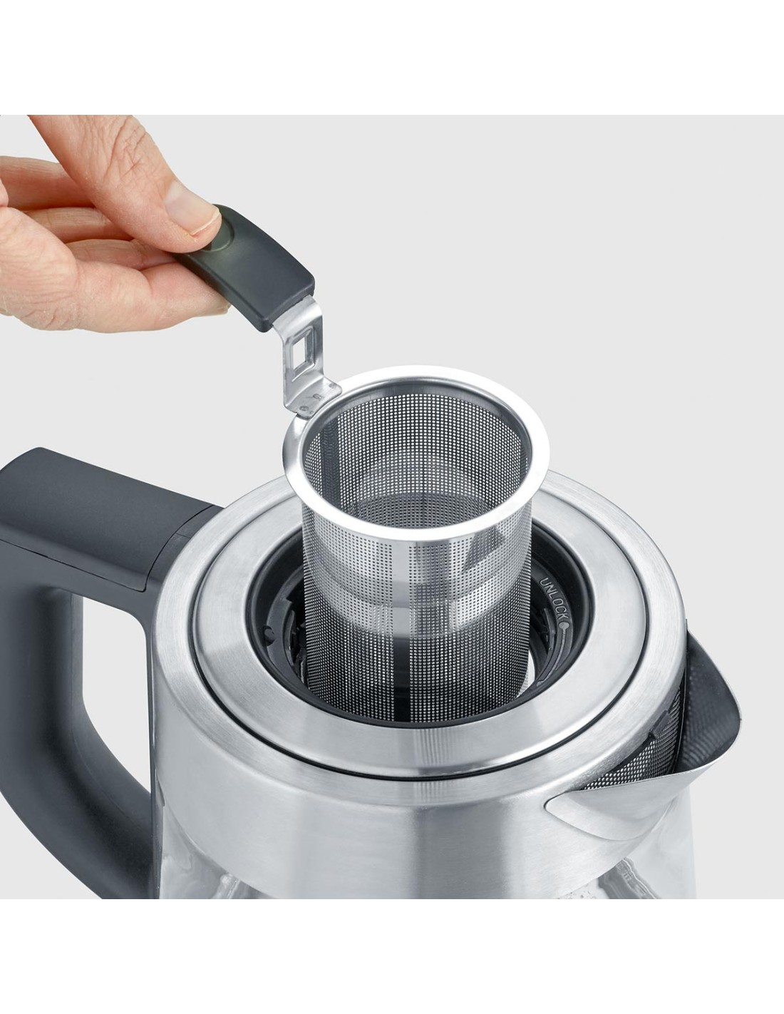 La carcasa y la base son de acero inoxidable de alta calidad con botones de control iluminados y pantalla LED. El cuerpo transparente te permitirá ver cómo se hace tu infusión y está fabricado en cristal totalmente resistente a los cambios de temperatura.